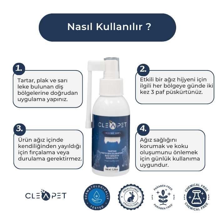 Diş Tartarı, Plaklar ve Ağız Kokusu Karşıtı Nano Gümüş Sprey 100ml-Kedi Köpek